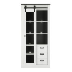 Vitrine mit 2 Türen, Oben mit Glaseinsatz Innen 3 Böden Anthrazit oder Weiß Wotan Eiche Dekor B/H/T: 50/158/40 cm (Type 27)