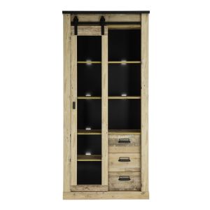 Vitrine mit 2 Türen, Oben mit Glaseinsatz Innen 3 Böden Anthrazit oder Weiß Wotan Eiche Dekor B/H/T: 50/158/40 cm (Type 27)