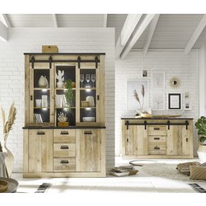 Vitrine mit 3 Türen, Mitte mit Glaseinsatz Innen 4 Böden Anthrazit oder Weiß Wotan Eiche Dekor B/H/T: 50/200/40 cm (Type 24)
