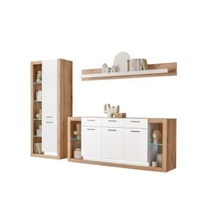 Trusted Shops geprüftDie Brixen Möbelserie steht für modernes Design, das Eleganz und Natürlichkeit stilvoll vereint. Der Korpus sowie die Applikationen in authentischem Evoke Eiche Dekor bringen warme Holztöne in Ihre Wohnräume, während die supermatten, tiefgezogenen MDF-Fronten in Weiß für eine ruhige und edle Ausstrahlung sorgen. Diese Oberfläche ist nicht nur optisch ein Highlight, sondern auch angenehm weich im Griff und besonders pflegeleicht – ideal für den Alltag.