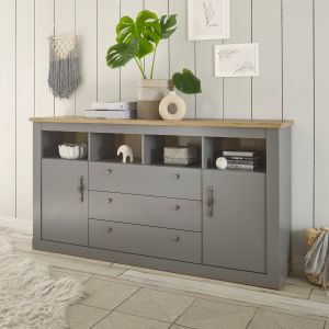 Trusted Shops geprüftDie Serie Chambord ist eine exklusive Kollektion von Wohnmöbeln, die aus FSC®-zertifiziertem Holzwerkstoff hergestellt ist. Die Möbelstücke zeichnen sich durch ein light grey Artisan Oak Dekor aus, das eine natürliche und moderne Ausstrahlung hat. Sie sind mit hochwertigen Metallgriffen versehen, die für einen hohen Bedienkomfort sorgen.