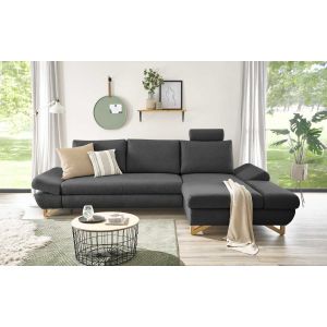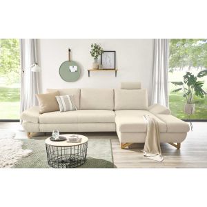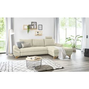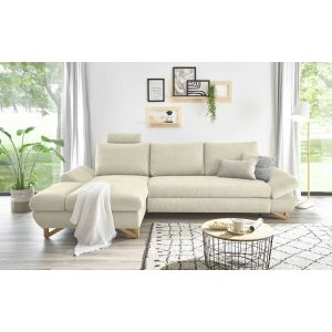 Besonders hervorzuheben ist die praktische Bettfunktion, die sich durch einfaches Vorziehen der Sitzfläche aktivieren lässt. Dazu kommt ein integrierter Bettkasten, ideal für Gäste oder zusätzlichen Stauraum. Die verstellbaren Armlehnen mit Rasterfunktion sowie die frei positionierbare Kopfstütze bieten individuellen Sitzkomfort. Ein teilmassives Holzuntergestell und natur lackierte Massivholzfüße sorgen für Stabilität und unterstreichen die warme, nordische Optik.