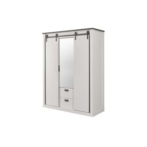 6P PX 20 84 Kleiderschrank 4 Türen, 3 Schubladen Dekor Pinie Weiß B/H/T ca.: 147/206/64 cm