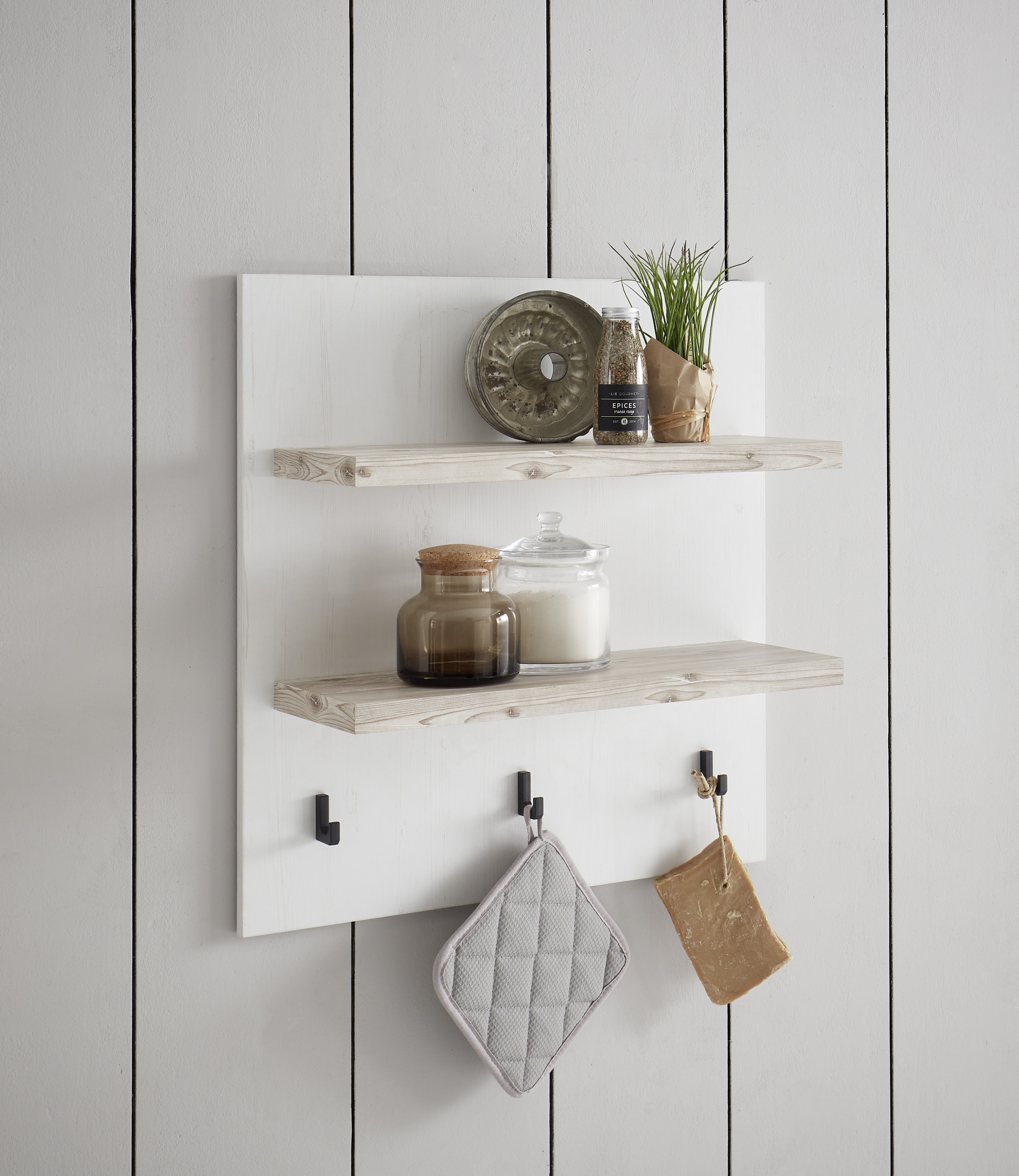 Die Küche im stilvollen Dekor Anderson White Pine mit Applikationen in Oslo Pine vereint natürliche Holzoptik mit funktionalem Design und schafft eine helle, freundliche Atmosphäre. Sie besteht aus einem kleinen Spülenschrank mit integriertem Flaschenfach, der sich ideal für kompakte Bereiche eignet, sowie einem größeren Spülenschrank, ebenfalls mit Flaschenfach, der zusätzlichen Stauraum bietet. Ein Herdumbauschrank fügt sich harmonisch in das Gesamtbild ein und bietet Platz für einen Einbauherd. Ergänzt wird die Küche durch zwei offene Regale – eines mit einem Ablageboden und Haken, das andere mit zwei Ablageböden und Haken – die praktische Aufbewahrungsmöglichkeiten für Küchenutensilien, Gewürze oder Dekorationen bieten. Zwei Hängeschränke sorgen für weiteren Stauraum, wobei einer mit einer eleganten Glasrahmentür ausgestattet ist und optional mit LED-Beleuchtung versehen werden kann, um stilvolle Akzente zu setzen. Die Küche wird ohne Elektrogeräte geliefert und eignet sich ideal für alle, die Wert auf ein natürliches Design und durchdachte Stauraumlösungen legen.