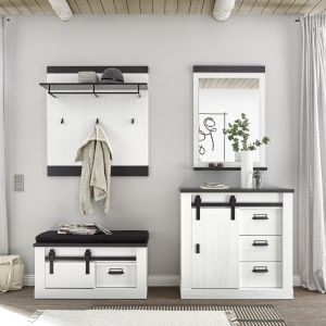 Panell mit Hängebeschlag (variabel einsetzbar). Pinie Weiss / Old Style Hell Anthrazit B/H/T: 60/54/22 cm (Type 38)