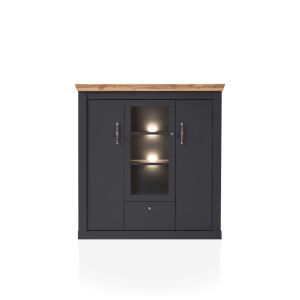 1P PA SC 25 Vitrinenelement Pinie Weiss Dekor / Anthrazit 2 Türen, 3 Schubkästen B/H/T ca.: 93/201/38 cm