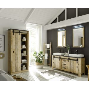 6P PX 20 57 Regal 1 Tür, 2 Schubladen Dekor Pinie Weiß B/H/T ca.: 147/207/45 cm