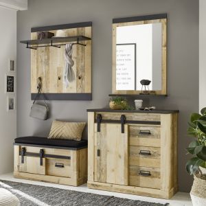 6P PX 20 75 Garderobenbank 2 Türen, 1 Nische Dekor Pinie Weiß B/H/T ca.: 124/42/45 cm